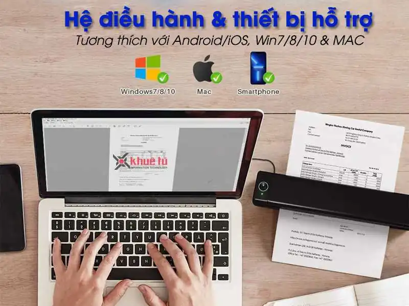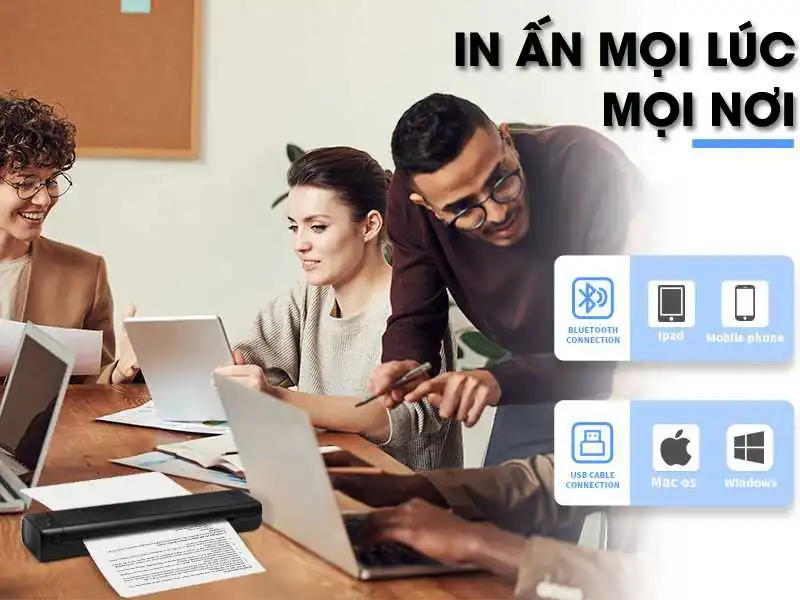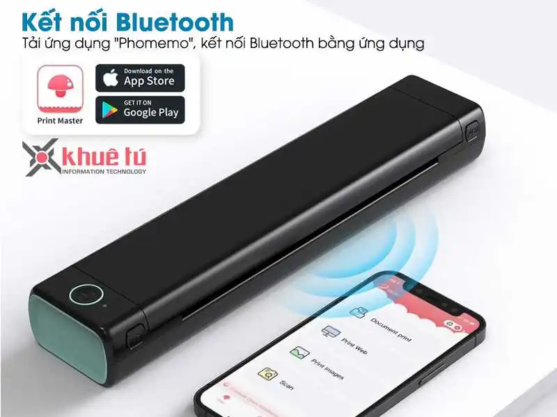 M08f kết nối không dây với thiết bị di động Android/iOS thông qua app Phomemo; kết nối có dây với máy tính chạy WIN/MAC và có thể in trực tiếp từ các file tài liệu như máy in thông thường.