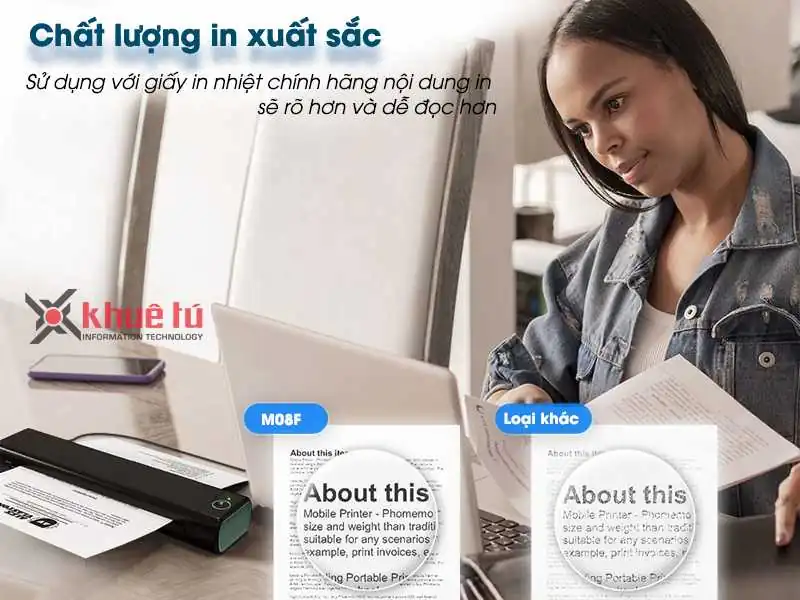M08f sử dụng với giấy in nhiệt A4 chính hãng sẽ cho nội dung in rõ đẹp với chất lượng xuất sắc