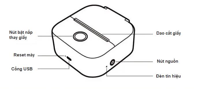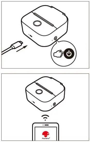 - Vui lòng sạc máy in trong lần sử dụng đầu tiên, sau đó nhấn và giữ nút nguồn trong khoảng 3 giây để bật máy.