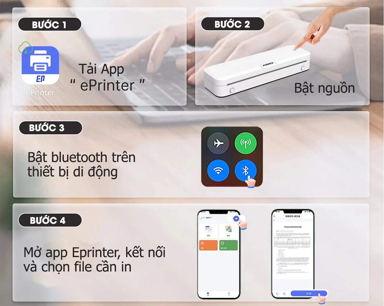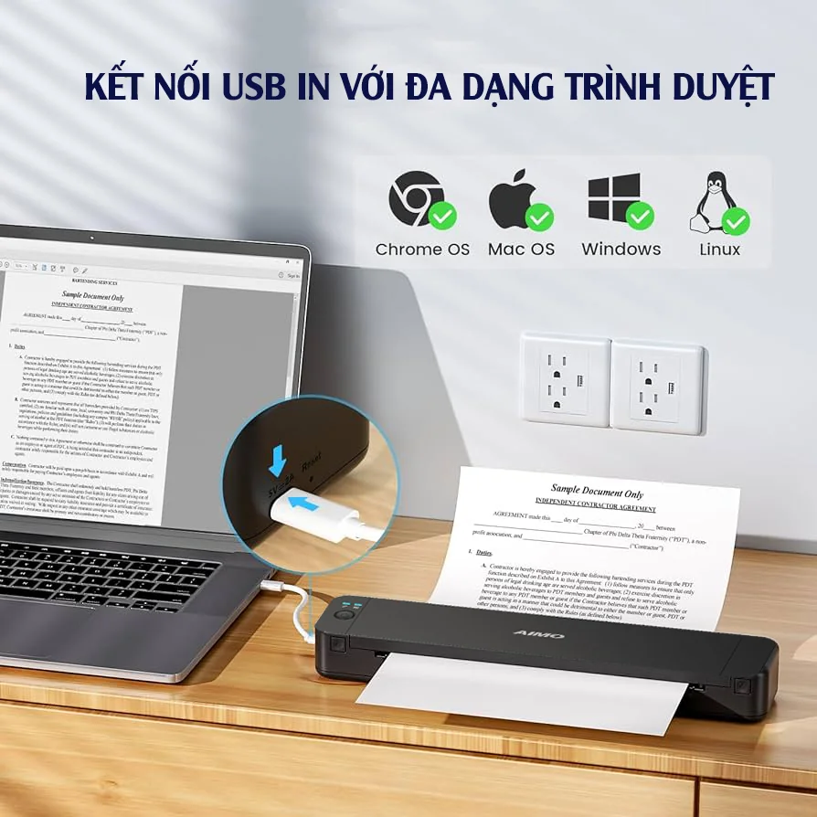 Đảm bảo rằng máy in di động tương thích với các thiết bị và hệ điều hành bạn sử dụng, chẳng hạn như iOS, Android, Windows, hoặc macOS.