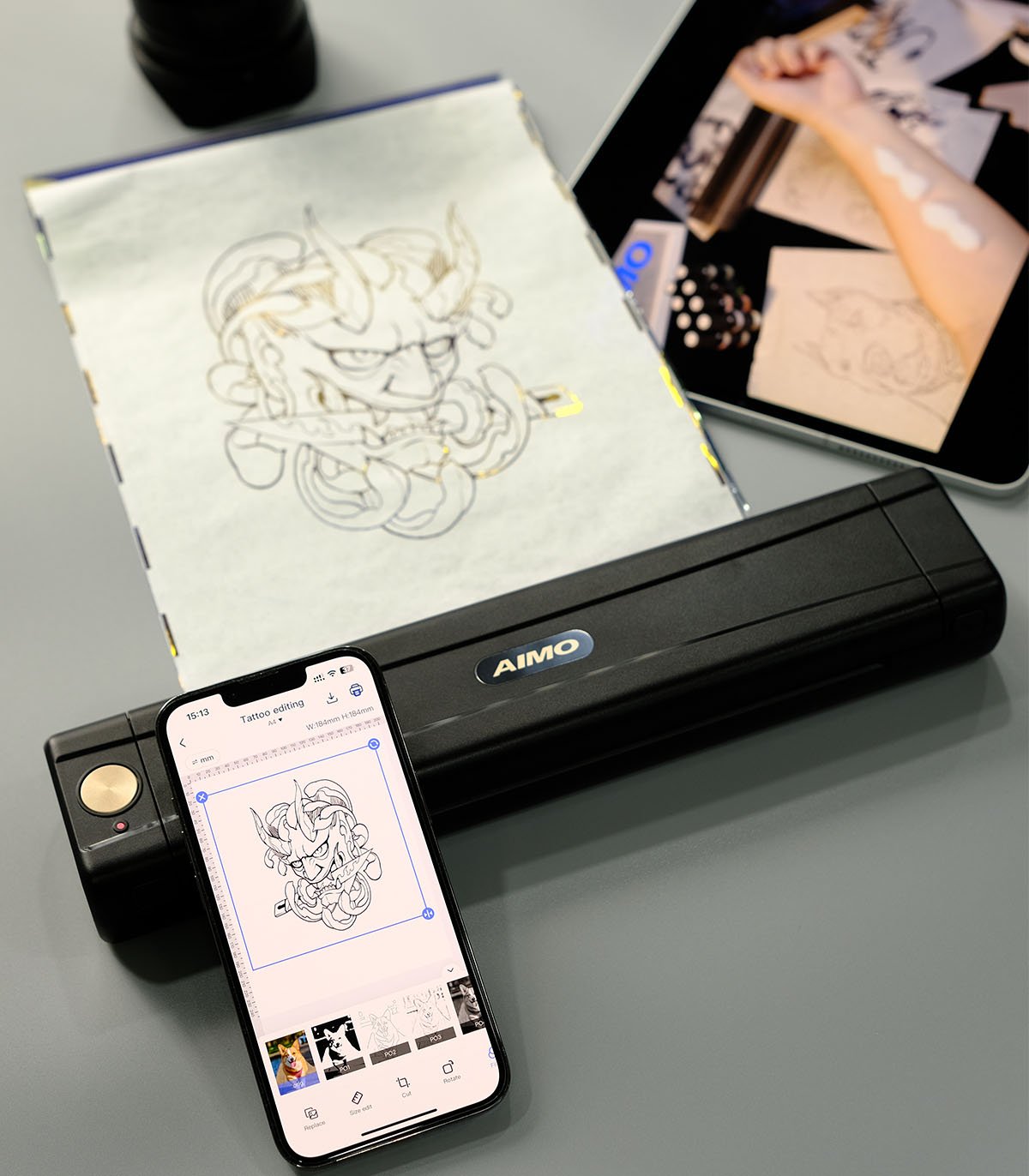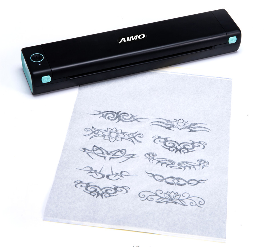 Máy in nhiệt di động có thể in các mẫu thiết kế xăm lên giấy nhiệt đặc biệt, giúp nghệ sĩ xăm dễ dàng chuyển mẫu thiết kế lên da khách hàng. Điều này giúp tiết kiệm thời gian và đảm bảo tính chính xác của thiết kế so với việc vẽ tay.