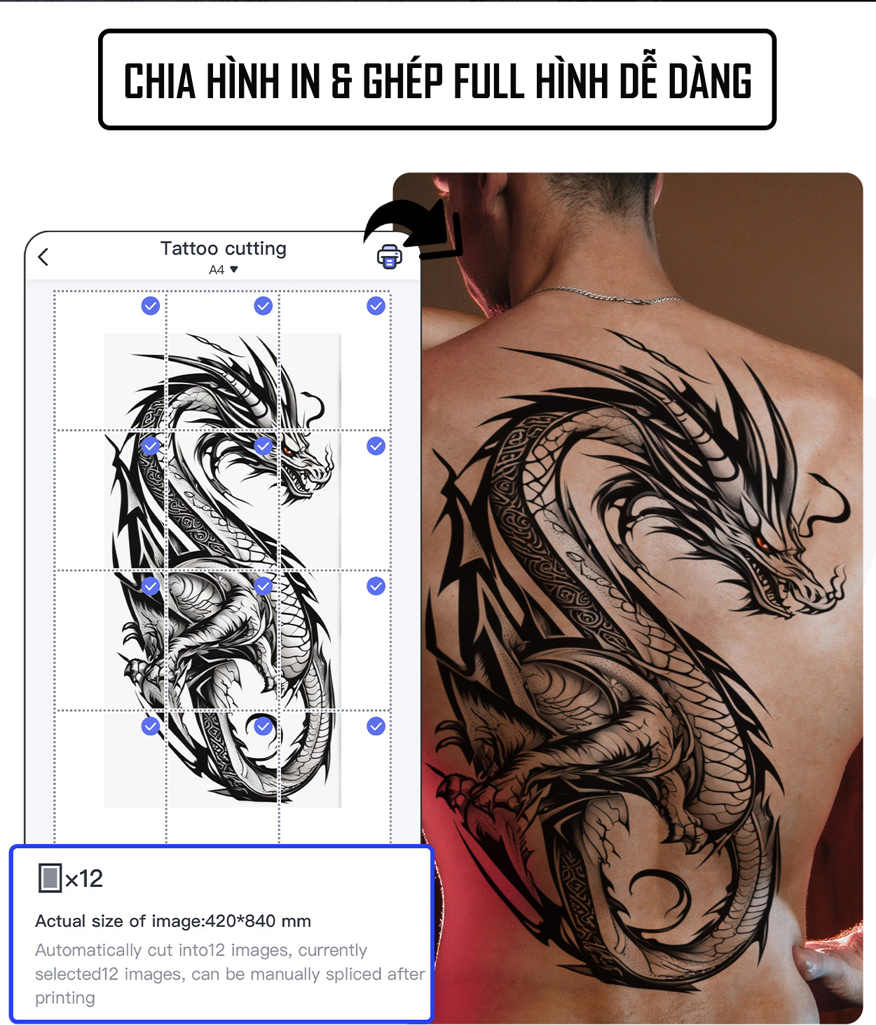 Các nghệ sĩ xăm có thể tạo mẫu thiết kế trên các phần mềm thiết kế đồ họa và in trực tiếp từ máy in nhiệt di động, đảm bảo rằng mọi chi tiết nhỏ trong thiết kế đều được thể hiện rõ ràng.
