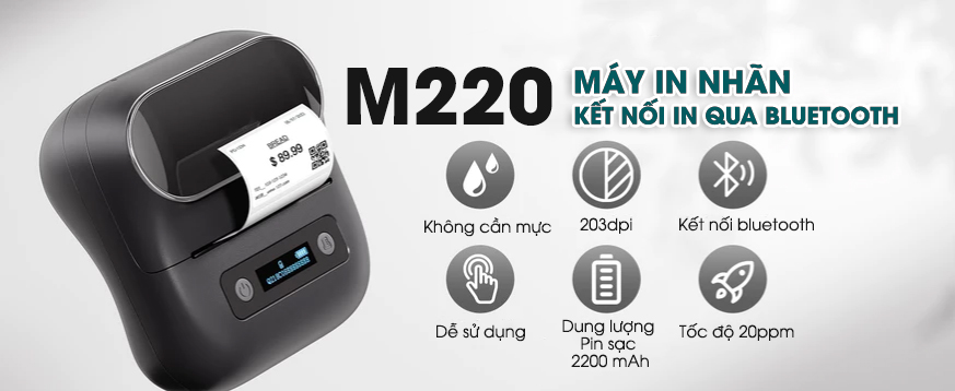 Với thiết kế gọn nhẹ, in không cần mực, kết nối dễ dàng qua Bluetooth, AIMO M220 là giải pháp in tem nhãn tối ưu dành cho các cửa hàng nhỏ, shop handmade, kinh doanh trang sức và phụ kiện.