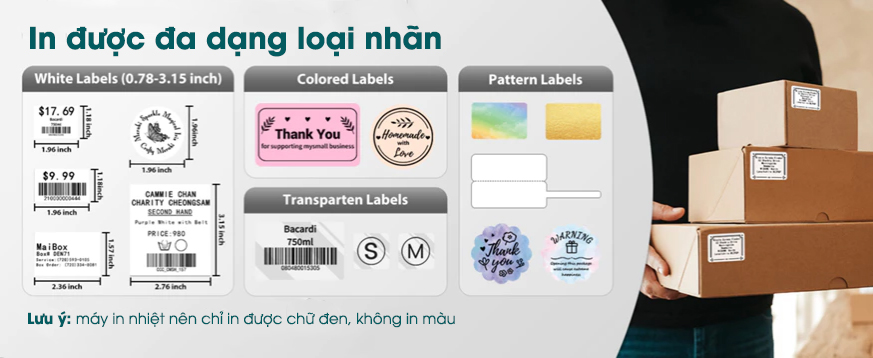 2. Hỗ trợ in nhiều loại nhãn với kích thước đa dạng