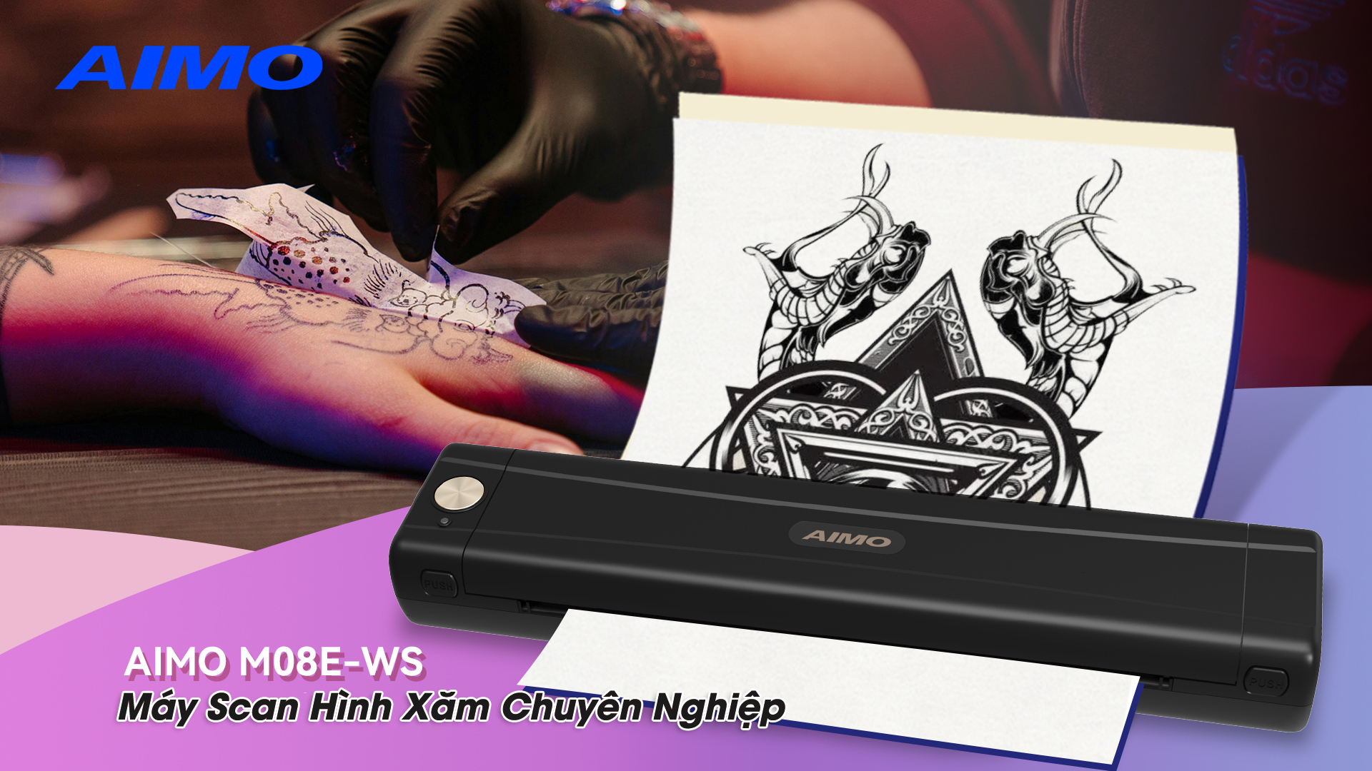 Trong giới tattoo chuyên nghiệp, AIMO M08E-WS đang là cái tên được nhiều studio tin tưởng lựa chọn. Đây là dòng máy scan hình mẫu chuyên dụng, được thiết kế riêng cho nhu cầu stencil, cho khả năng in ổn định, rõ nét, ít lỗi, và đặc biệt phù hợp với giấy cao cấp có độ nhạy nhiệt cao.
