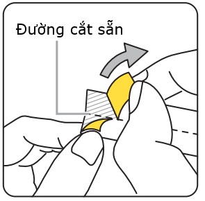 6. Xé giấy lót từ mặt sau của nhãn dọc theo đường cắt