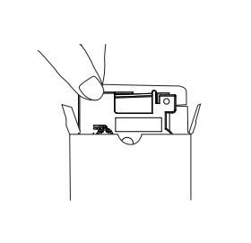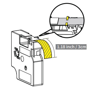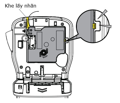 6. Đặt cuộn nhãn vào, hướng đầu nhãn ra khe lấy nhãn
