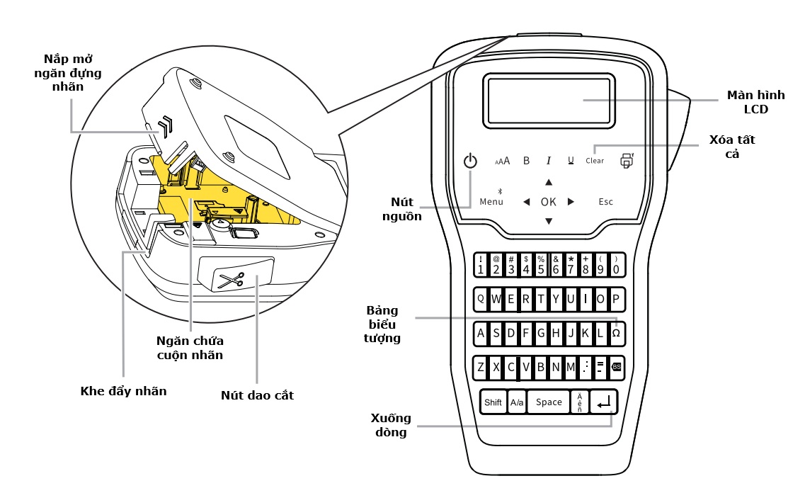 Lưu ý: Không cạo hoặc chà đầu in bằng vật cứng, vì có thể hỏng đầu in và chất lượng nhãn in kém đi.