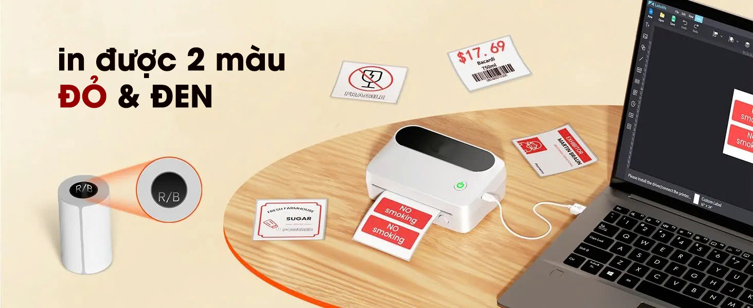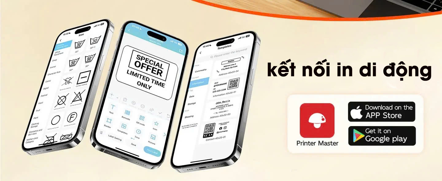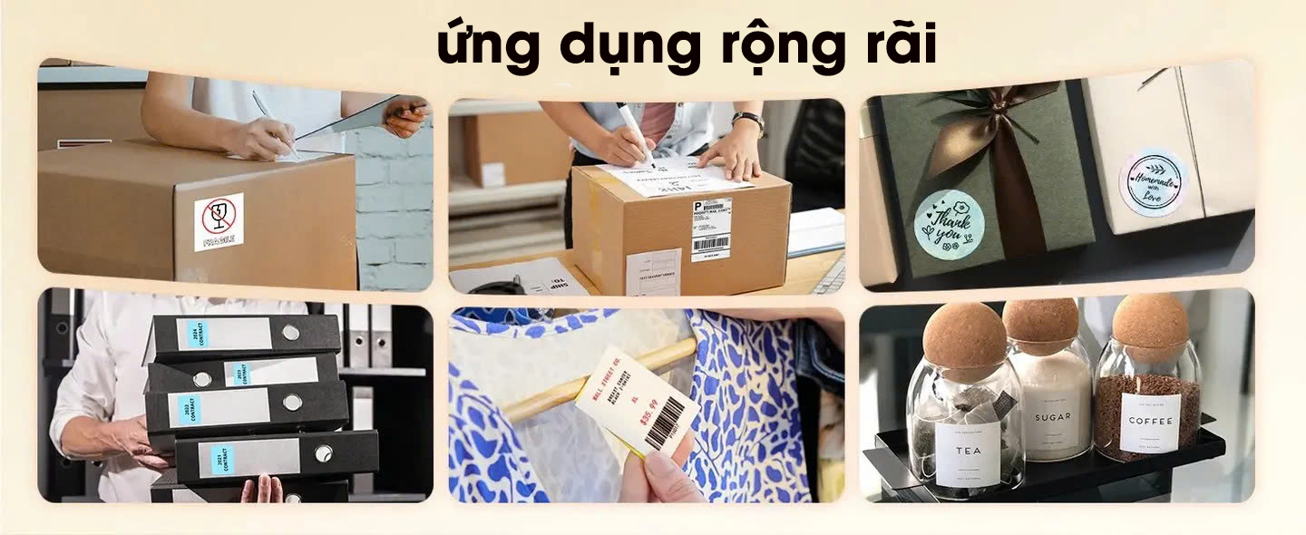 • Barcode / mã vạch: nếu sử dụng nhãn nhiệt phù hợp, bạn có thể in mã vạch, mã QR để kiểm soát kho, quét hàng nhanh hơn.
