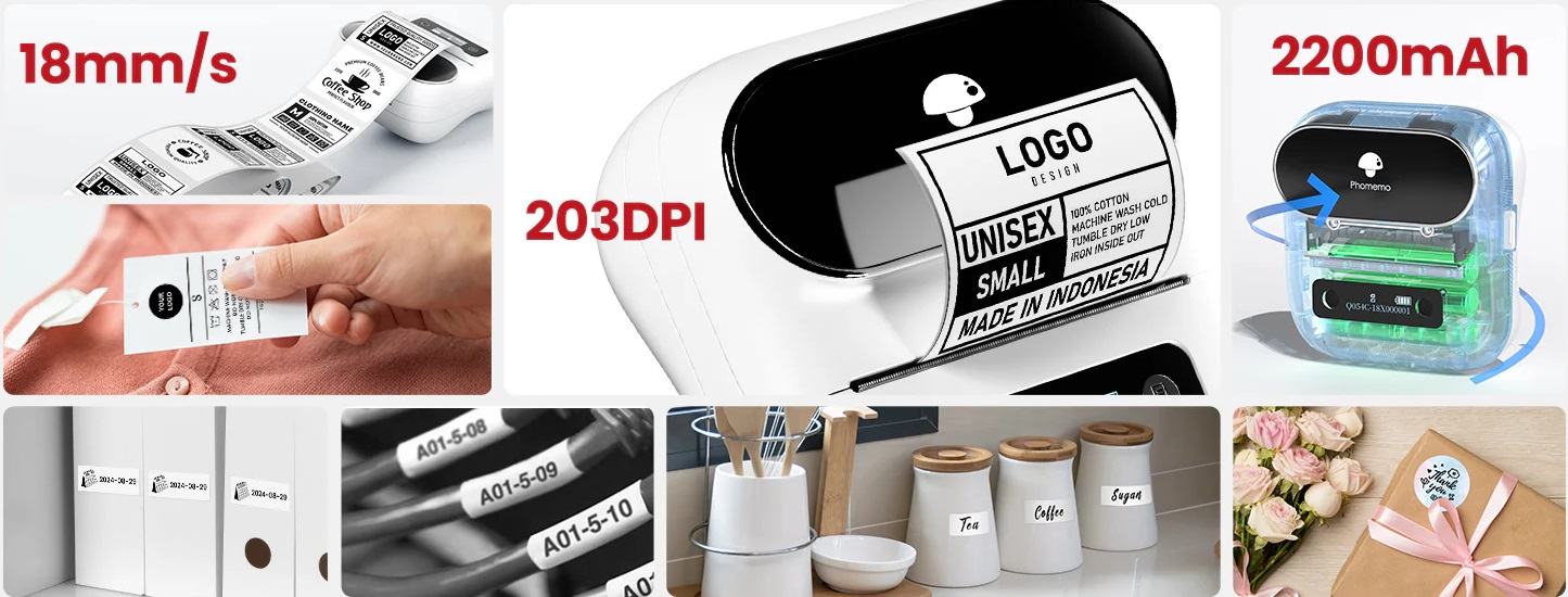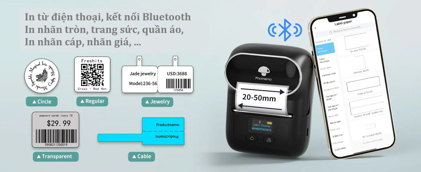 Máy in nhãn: Dạng cầm tay, in từ điện thoại thông qua App Print Maser