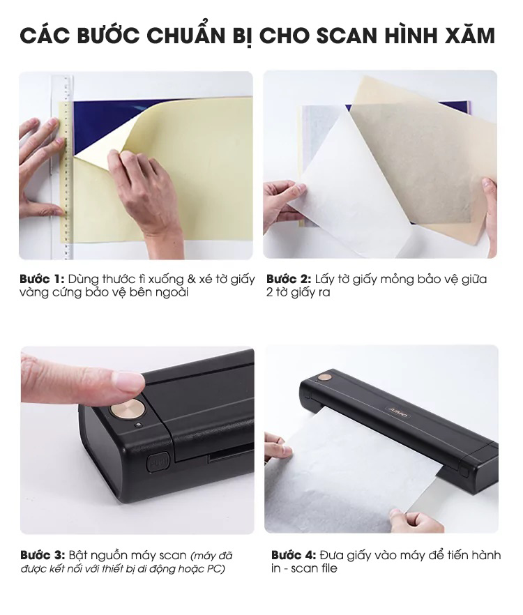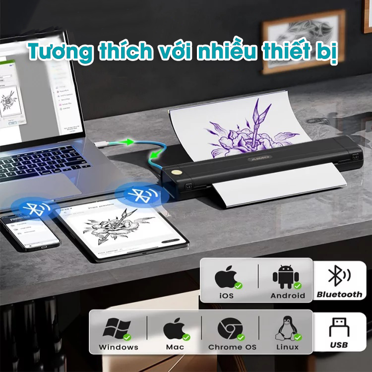 Máy scan hình xăm Bluetooth AIMO M08E-WS sử dụng công nghệ nhiệt tiên tiến để in ra các hoa văn và đường nét rõ ràng, chính xác, không gặp vấn đề tắc mực hay phải vệ sinh thường xuyên.