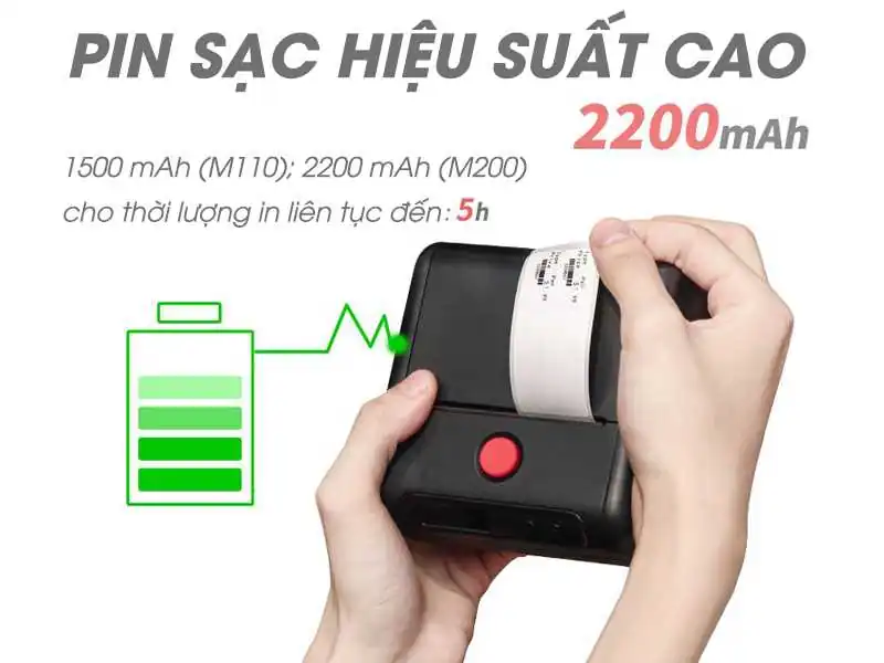 Hỗ trợ pin sạc hiệu suất cao 1500 mAh (M110) và 2200 mAh (M200)