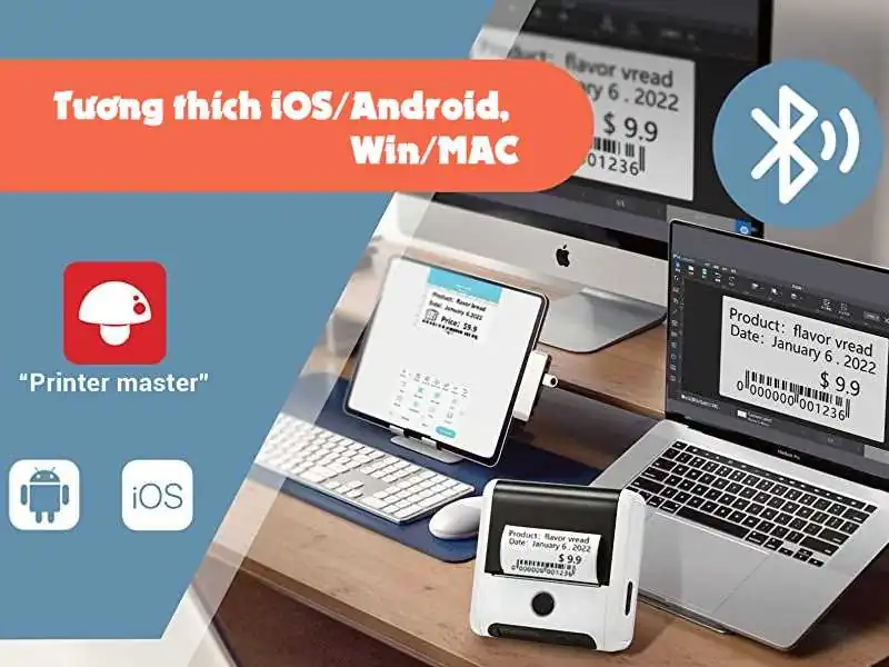 Ứng dụng tạo & in nhãn Print Master có sẵn trên Android/iOS, hỗ trợ Tiếng Việt